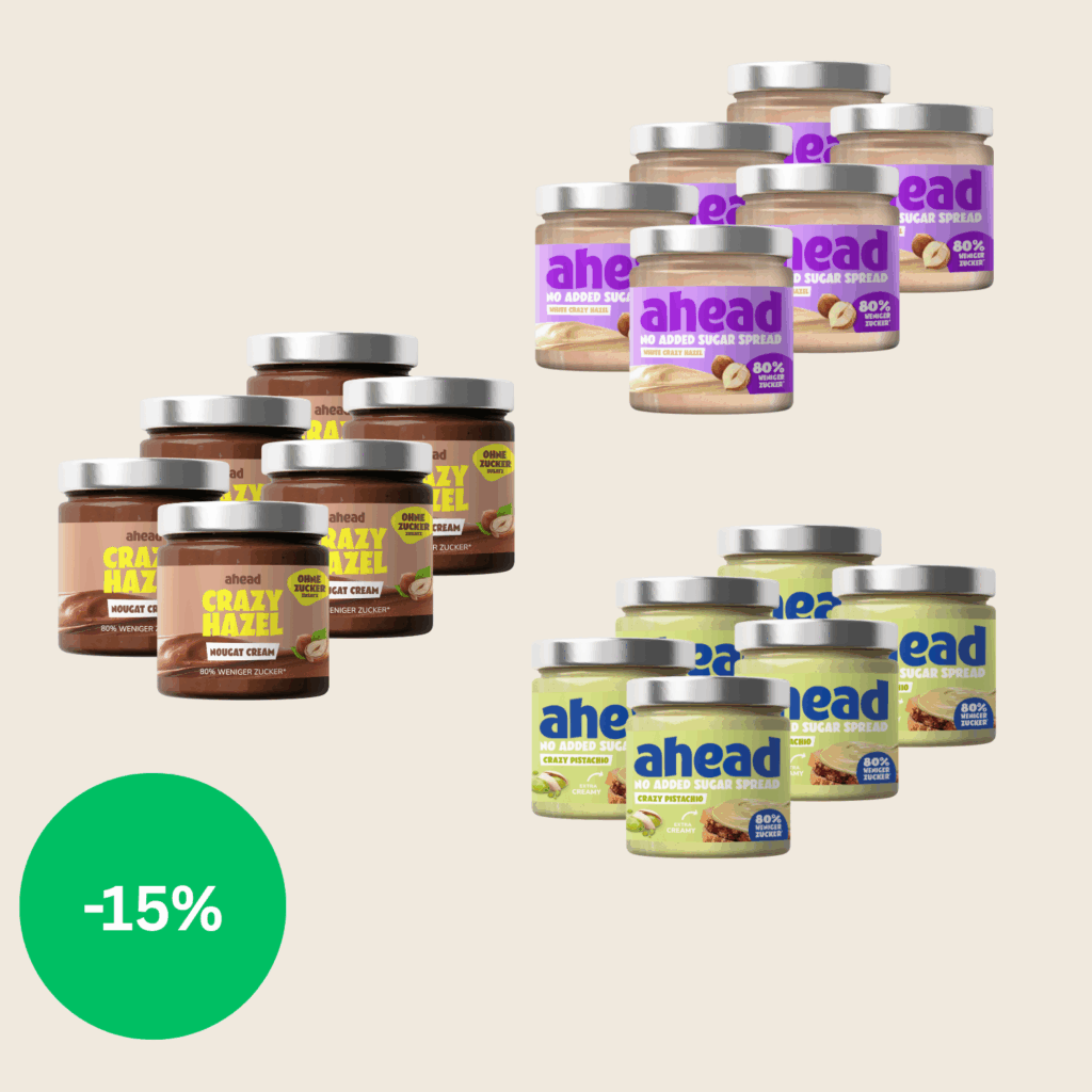 Mit Crazy Hazel von ahead bekommst du eine echte gesunde Alternative zu Nutella mit nur 1,7g Zucker pro Portion und das trotz 100% Geschmack.