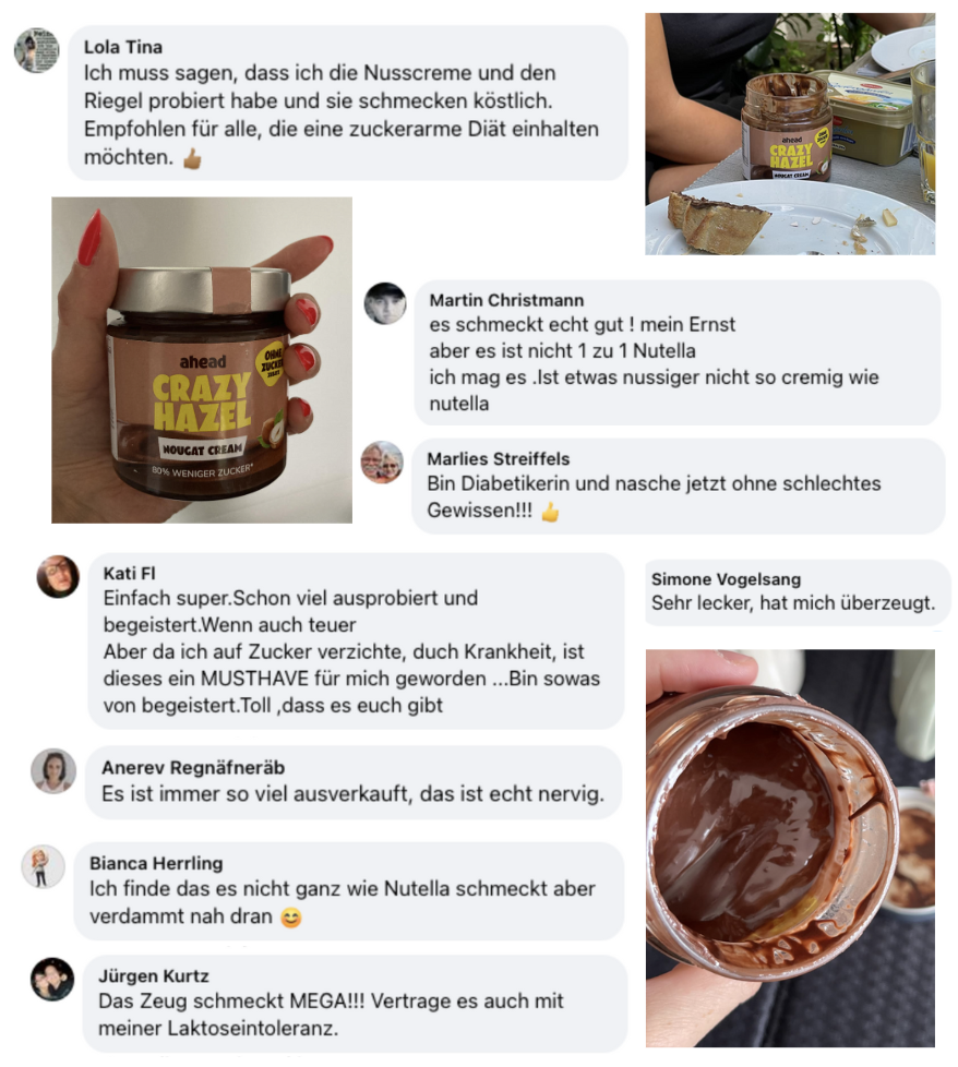 Mit Crazy Hazel von ahead bekommst du eine echte gesunde Alternative zu Nutella mit nur 1,7g Zucker pro Portion und das trotz 100% Geschmack.